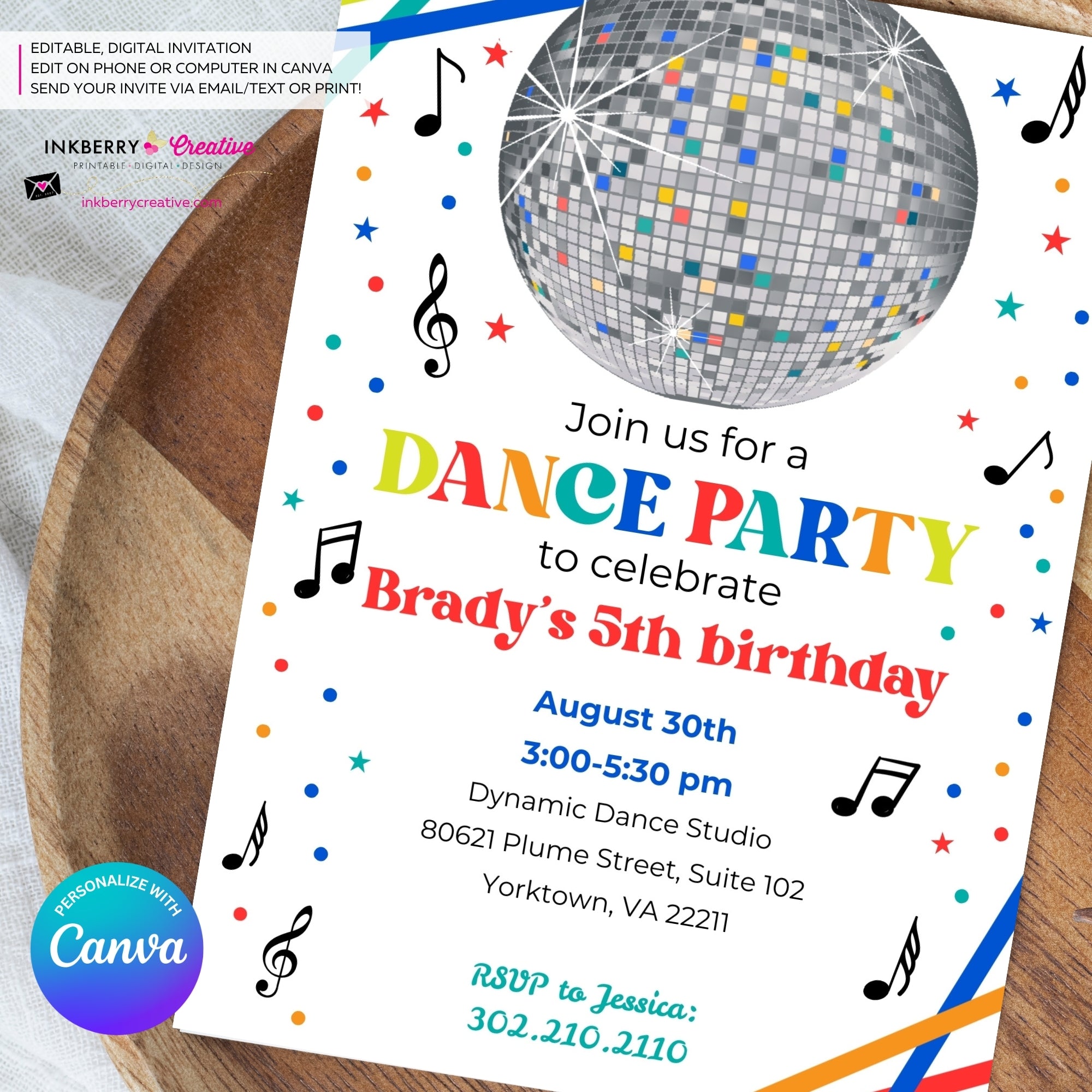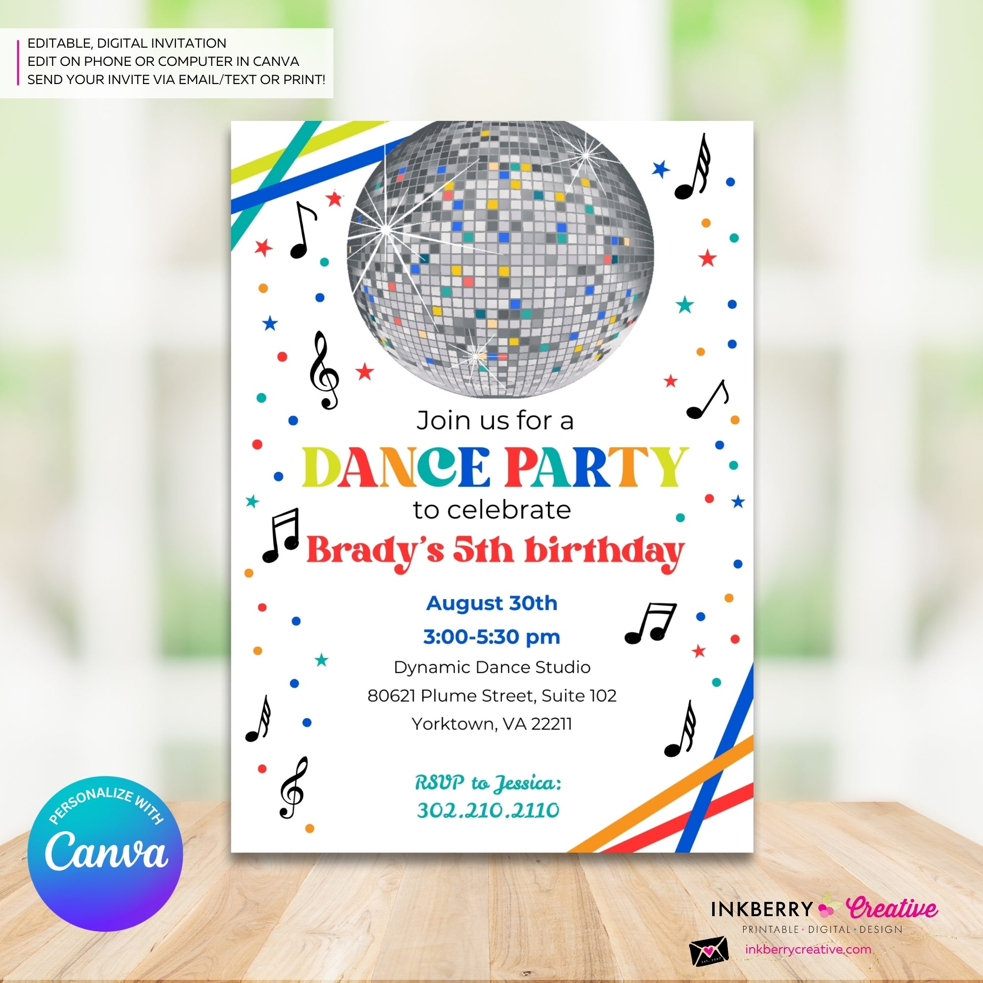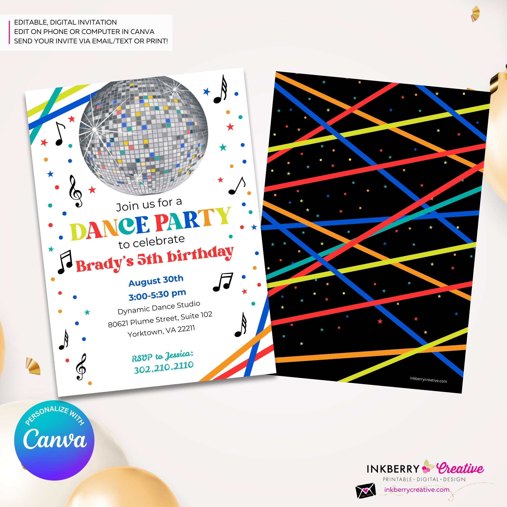 Throw an unforgettable dance birthday party with our customizable digital invitation! Perfectly sized at 5x7 inches, this delightful invitation features a front and back design, ready to be personalized to your heart’s content.