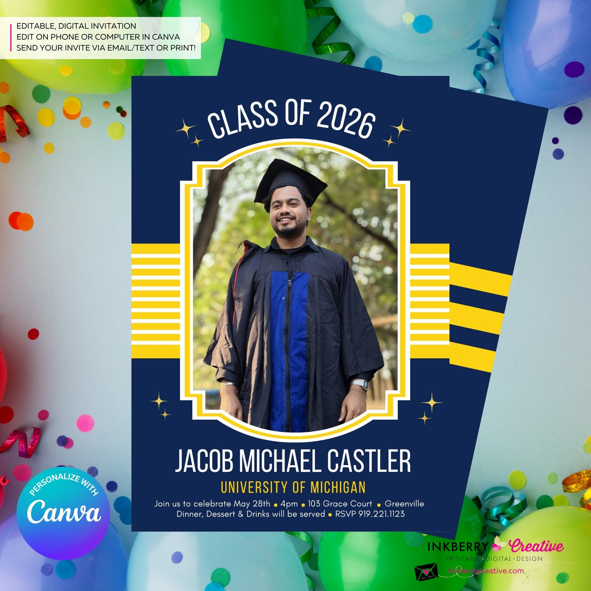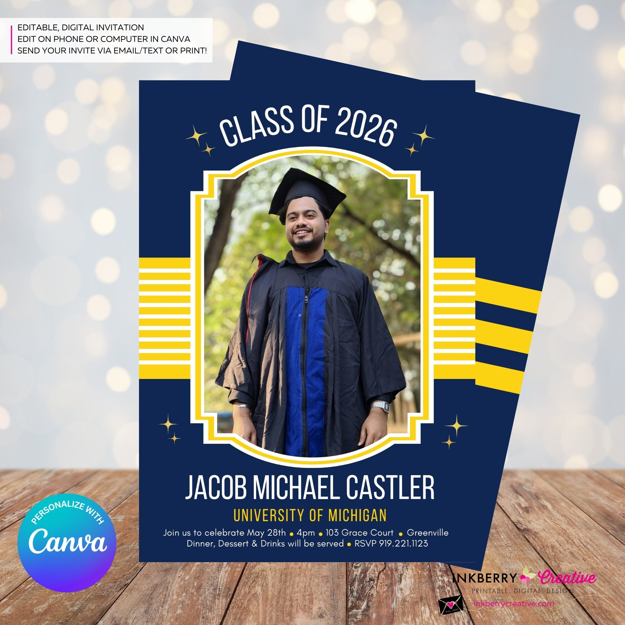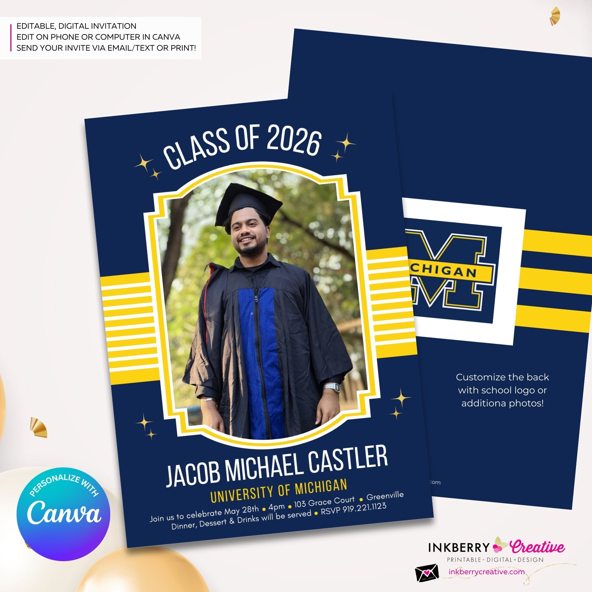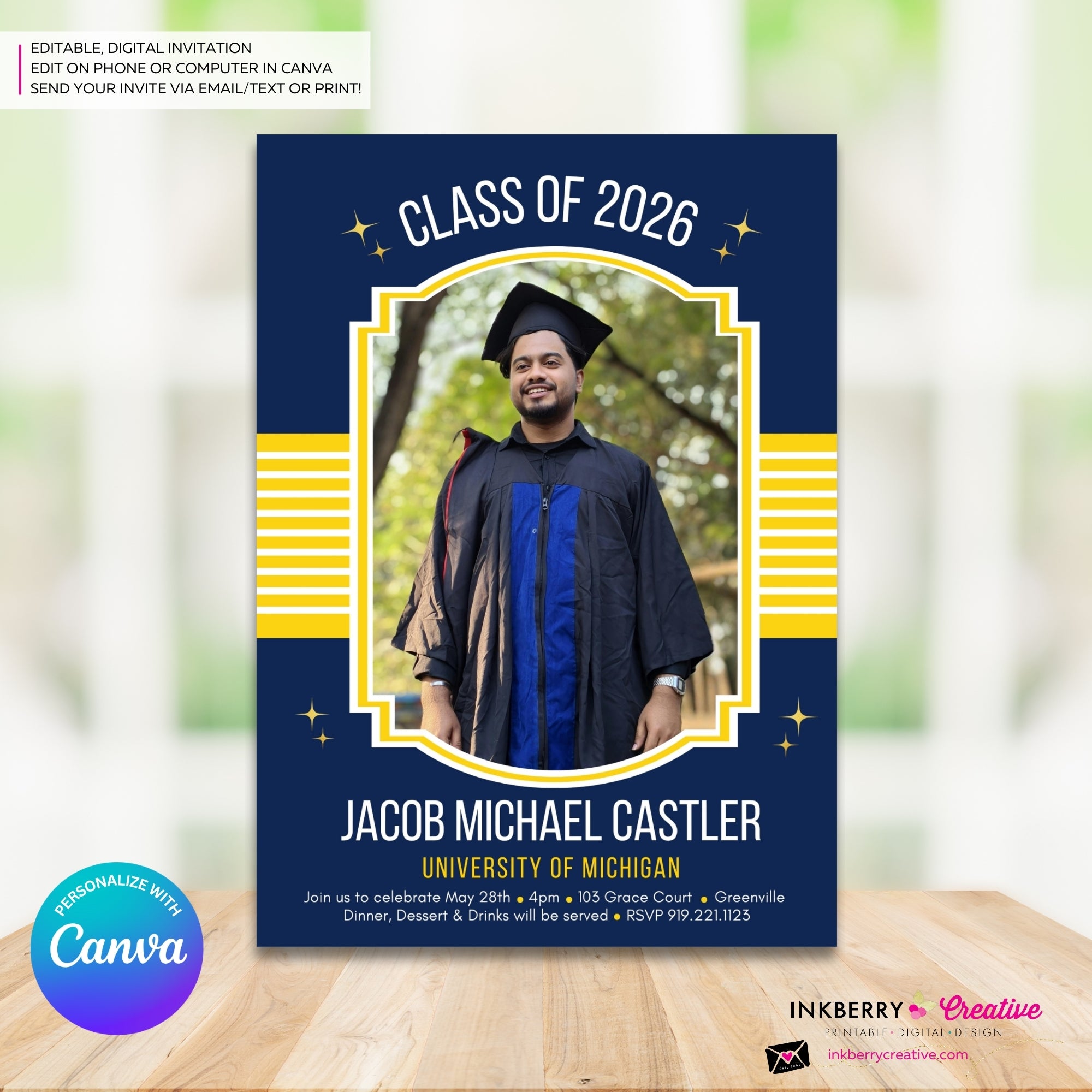 Collegiate Star - Custom Color Graduation Invitation or Announcement - Editable in Canva