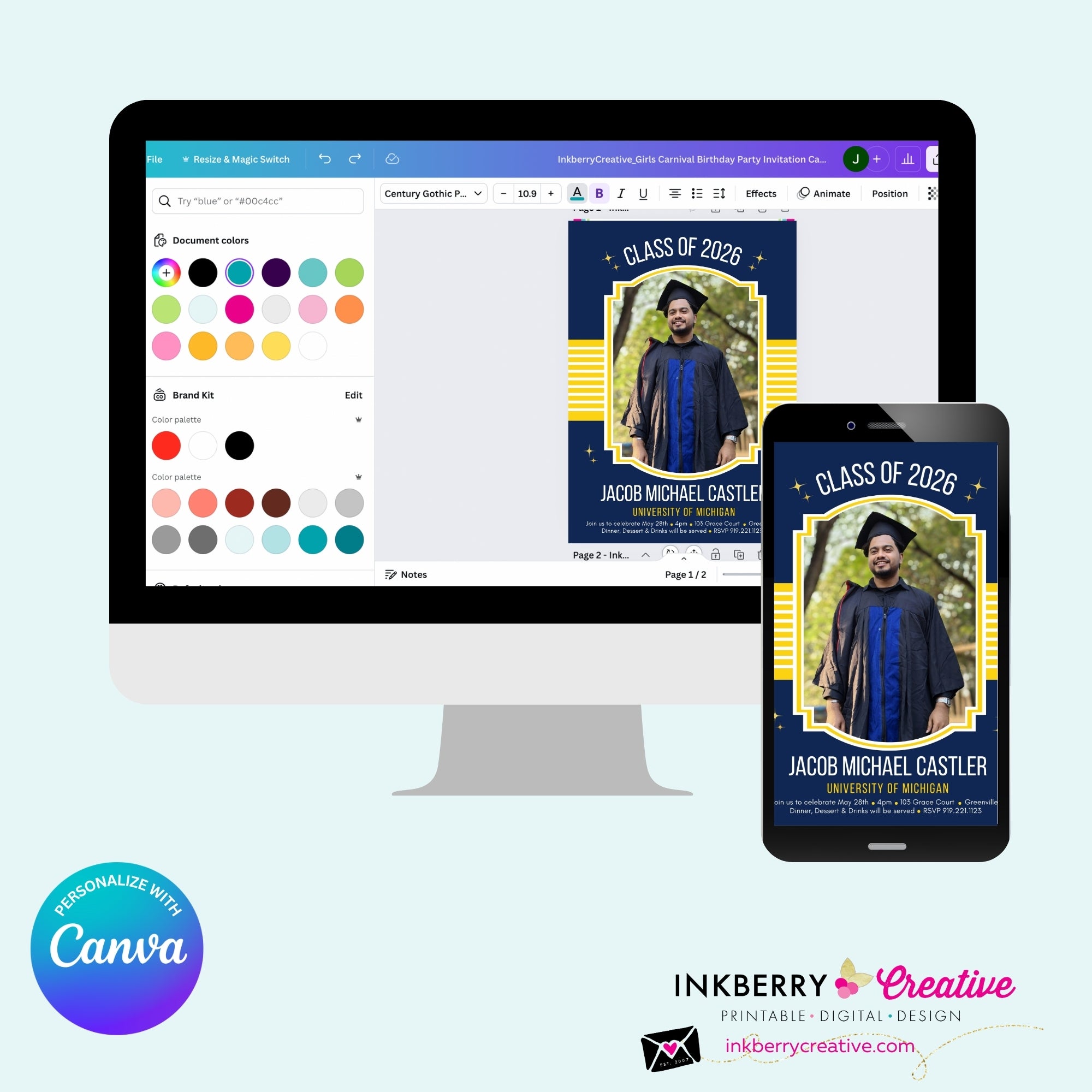 Perfect for high school graduations, college graduations, and senior celebrations — all in one simple, editable template.
