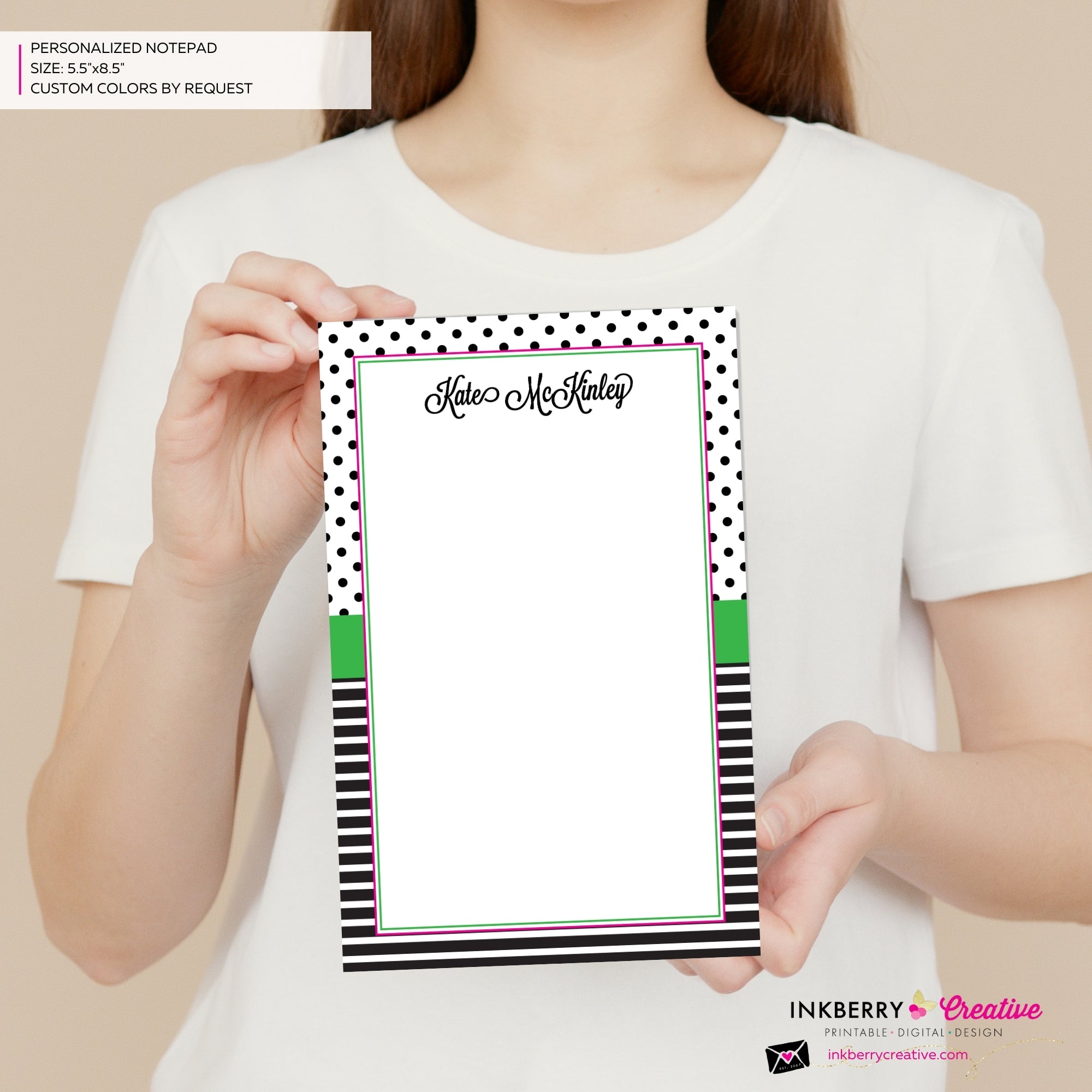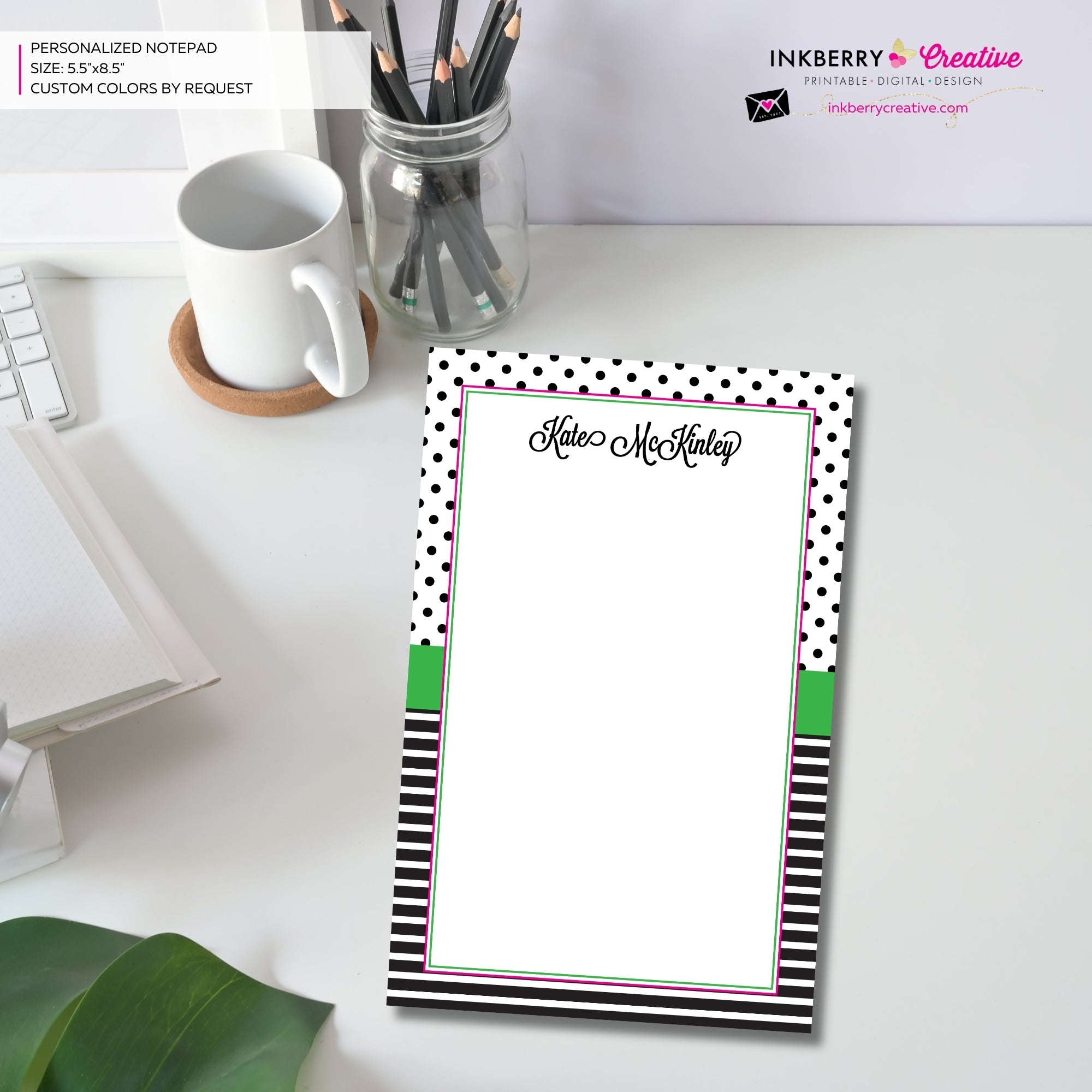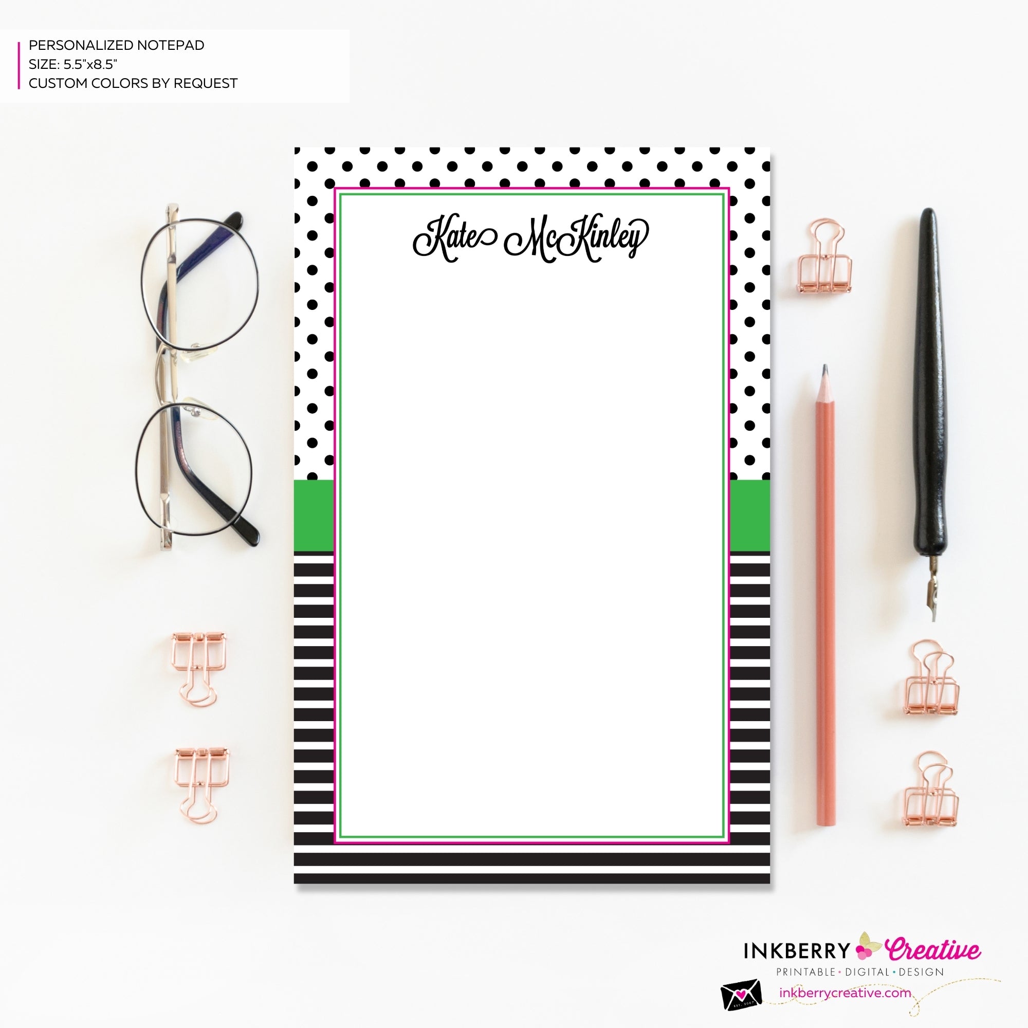 Inkberry's personalized notepads come in a variety of colorful designs and patterns which can be customized to any color scheme you would like. Don't want a monogram? We can replace it with your name instead. Looking for a teacher's gift? We can customize with a teacher's name. These notepads are the perfect personalized gift that allows you to be creative in choosing your colors and style. We are constantly adding new styles and patterns so you have a wide selection of styles to choose from. These notepads make great gifts and also are perfect for your own daily planning.